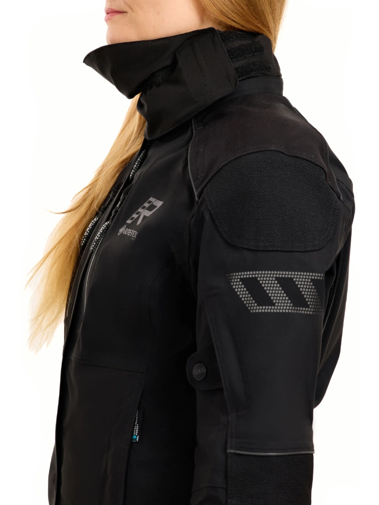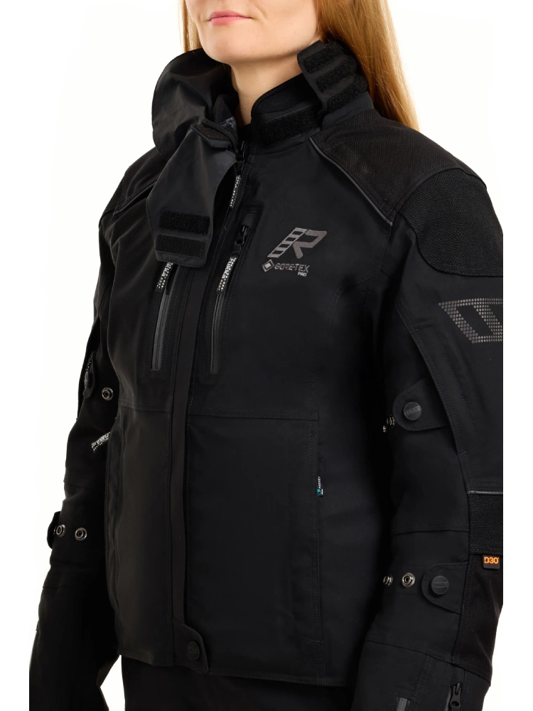 Ochronę pleców zapewnia protektor Rukka D3O® Air XTR poziomu 1, a specjalna kieszeń umożliwia montaż dodatkowego ochraniacza klatki piersiowej, pozwalając indywidualnie dostosować system bezpieczeństwa do Twoich potrzeb.