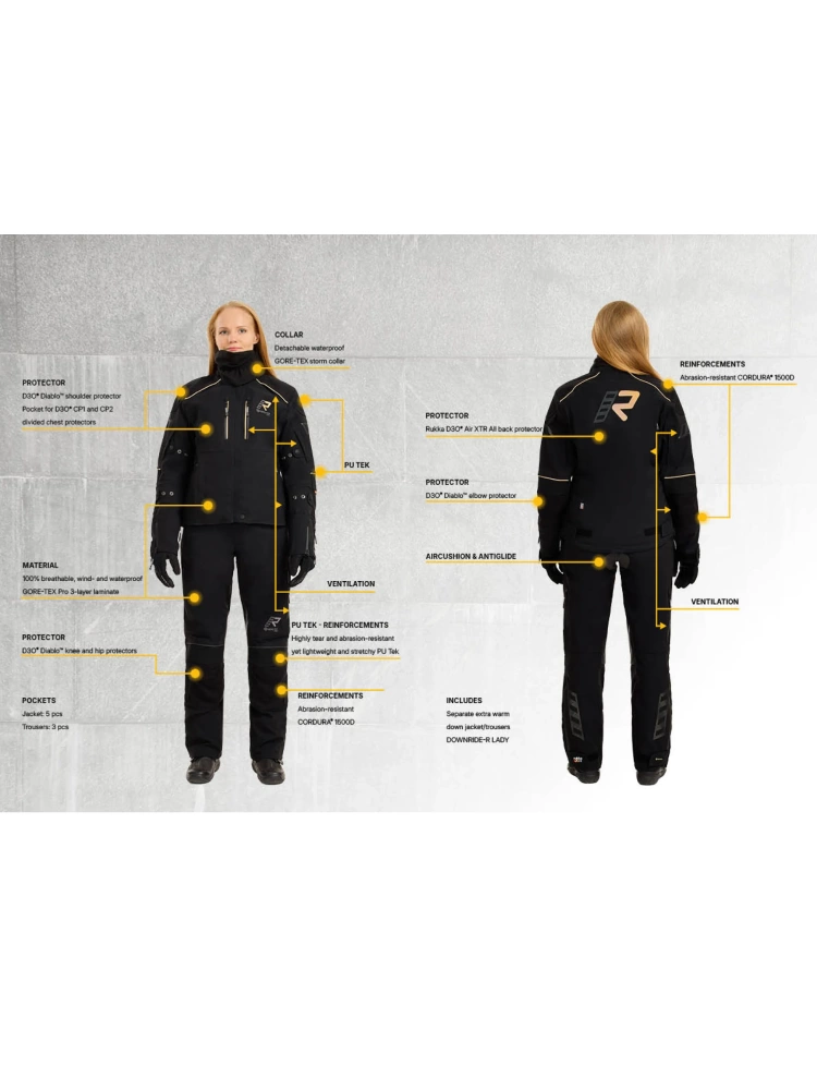 • Możliwość doposażenia w ochraniacz pleców Rukka D3O® Air XTR poziom 2.